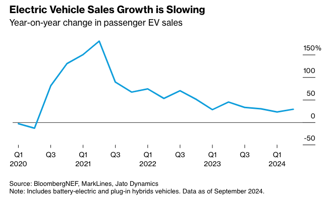 2023~2024년까지 이어졌던 전기차 붐은 분명히 식고 있다.